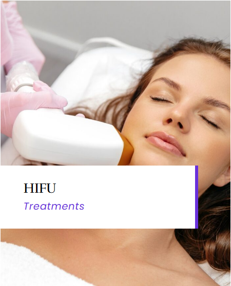 HIFU Treatments / High-Intensity Focused Ultrasound What is HIFU (High-Intensity Focused Ultrasound)? HIFU is a non-invasive, anti-aging treatment that uses focused ultrasound energy to stimulate collagen production deep within the skin. It tightens, lifts, and firms the face, neck, and body—offering a natural facelift effect without surgery or downtime. The HIFU Treatment Advantages This advanced technology is ideal for those seeking visible skin tightening and contouring: Non-Surgical Skin Lifting: Firms sagging skin on the face, neck, and jawline Stimulates Collagen Production: Promotes long-term skin rejuvenation Natural, Gradual Results: Improvements appear over weeks as collagen builds Precise & Targeted: Focuses on deep skin layers without damaging the surface No Downtime: Resume daily activities immediately after treatment HIFU Aftercare Avoid hot showers, steam, and sun exposure for 24–48 hours Refrain from using harsh skincare products for a few days Stay hydrated to support collagen formation Use sunscreen daily to protect treated areas Mild redness or swelling may occur but subsides quickly