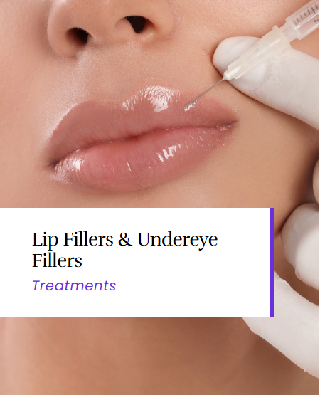 Lip Fillers & Undereye Fillers Treatments / Instant Rejuvenation What are Lip & Undereye Fillers? Lip and Undereye Fillers are non-surgical aesthetic treatments that use hyaluronic acid-based dermal fillers to add volume, smooth lines, and rejuvenate delicate facial areas. Lip fillers enhance shape and fullness, while undereye fillers reduce hollowness and dark circles, giving a refreshed and youthful appearance instantly. The Filler Treatment Advantages These quick and effective treatments offer natural-looking enhancement with minimal downtime: Instant Volume & Definition: Adds fullness to lips and under-eyes immediately. Reduces Tired Look: Fills hollows and minimizes dark circles. Natural Results: Tailored to your facial anatomy for subtle enhancement. Non-Surgical & Safe: No incisions or lengthy recovery time. Long-Lasting Effects: Results last 6–12 months depending on the area and product. Filler Aftercare Avoid touching or pressing the treated areas for 24 hours Refrain from intense workouts, alcohol, and sun exposure for 48 hours Use cold compresses to reduce any minor swelling Do not apply makeup over the area for at least 12 hours Stay hydrated and follow your injector’s post-care instructions