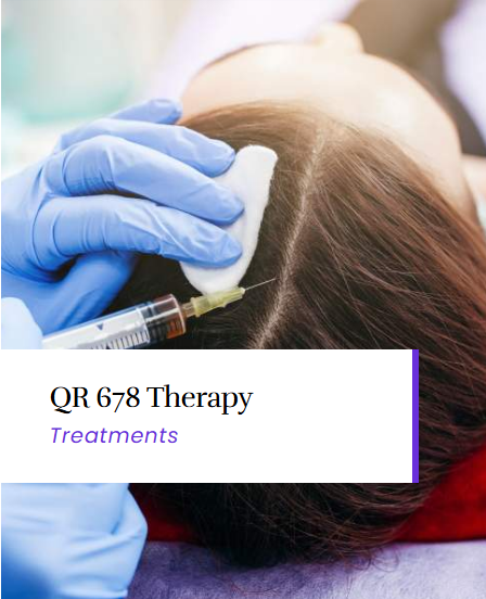 What is QR 678 Therapy? QR 678 is a scientifically developed, non-surgical hair regrowth treatment that uses a patented blend of growth factors to stimulate dormant hair follicles and prevent hair loss. Administered through targeted scalp injections, it helps increase hair density, reduce hair fall, and improve overall scalp health. The QR 678 Therapy Advantages This advanced treatment is ideal for individuals experiencing hair thinning, early hair loss, or post-COVID hair fall: Clinically Proven Formula: Developed and patented by Indian scientists for effective hair regrowth. Non-Surgical & Safe: No surgery, no downtime, and minimal discomfort. Prevents Hair Loss: Controls hair fall and slows down further thinning. Stimulates New Growth: Encourages thicker, healthier hair growth. Suitable for All Genders: Effective on men and women experiencing different hair loss stages. QR 678 Therapy Aftercare Do not wash or touch your scalp for at least 8 hours Avoid applying hair oils, gels, or sprays for 48 hours Refrain from sun exposure, saunas, or swimming for 2 days Use a mild shampoo and avoid harsh scalp massages Follow the full session plan recommended by your doctor for best results